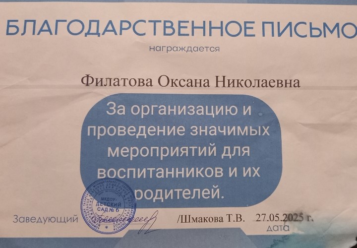 Диплом -"Моё лучшее образовательное мероприятие" в номинации "Физическое развитие".